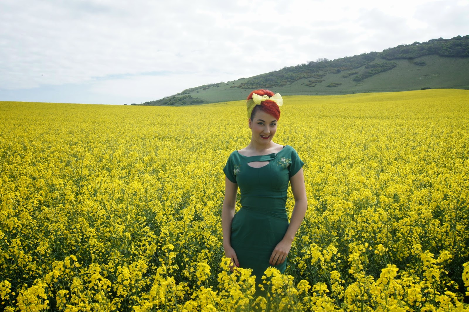 Aloha, beauties! Today's post is all about this gorgeous Tatyana dress that the lovely ladies at Bitter Root Vintage kindly sent me. I've been dreaming about doing this photoshoot since I moved to Sussex and when I received this dress I knew it would be a match made in heaven with the butter-coloured fields.
